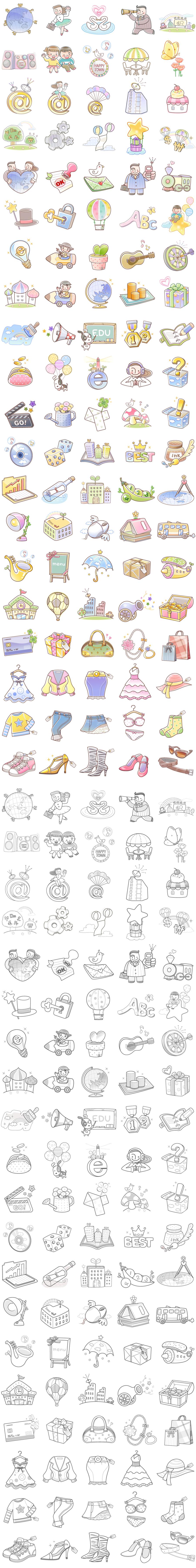 小人 铅笔甜甜圈 路牌 时钟 相框 相机 雷达 电视台 礼物盒