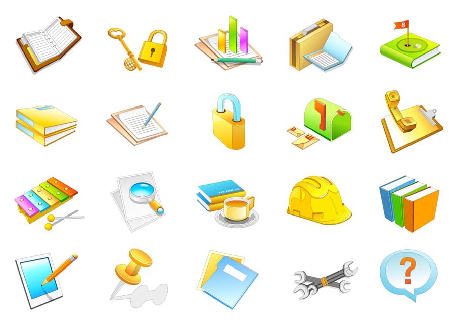 笔记本 锁头 柱形图 文件箱 高尔夫